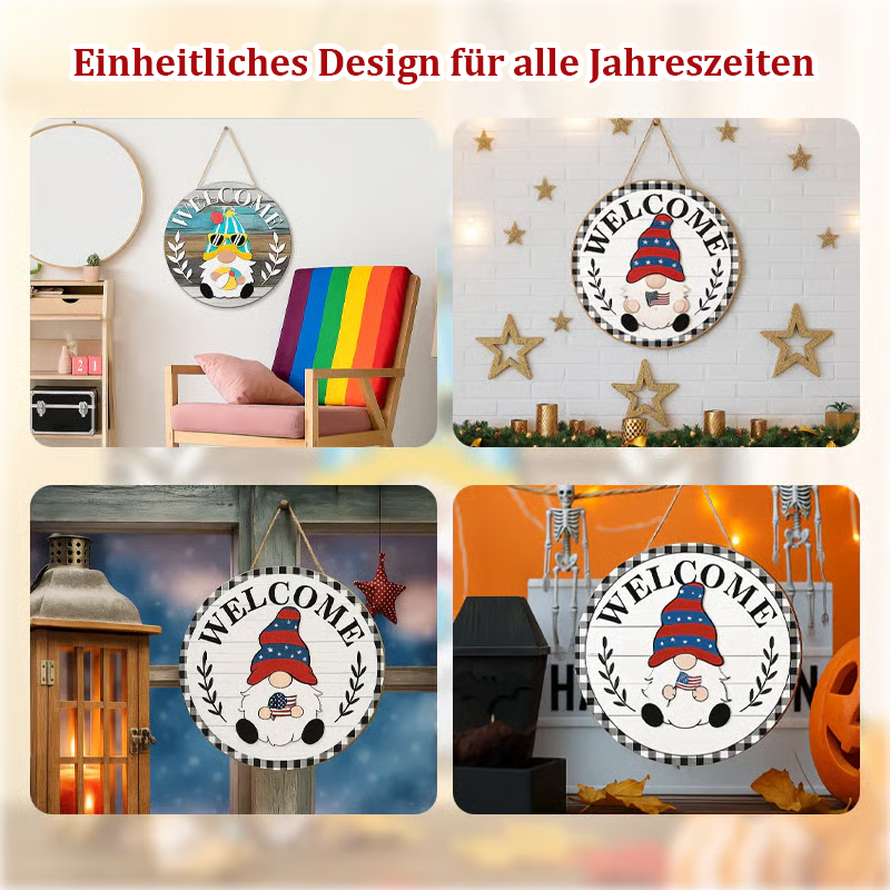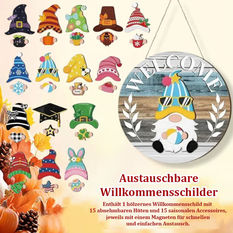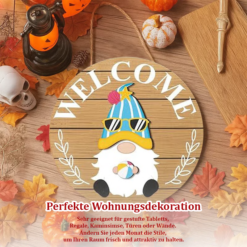 🍁🌸Austauschbares hölzernes Gnom-Willkommensschild – Feiern Sie jede Jahreszeit mit Stil!🎄🌷