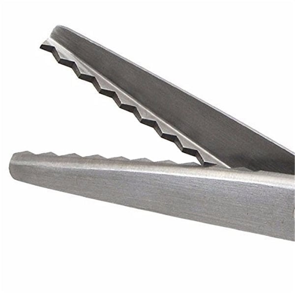 - VIELSEITIGE BRAUNSCHERE  : Die scharfen Klingen sind gezahnt und hinterlassen beim Schneiden ein Zickzackmuster. Das gezahnte Muster kann die Länge ausgefranster Fäden an Stoffkanten begrenzen, ohne dass sie hängen bleiben, und so Schäden minimieren.