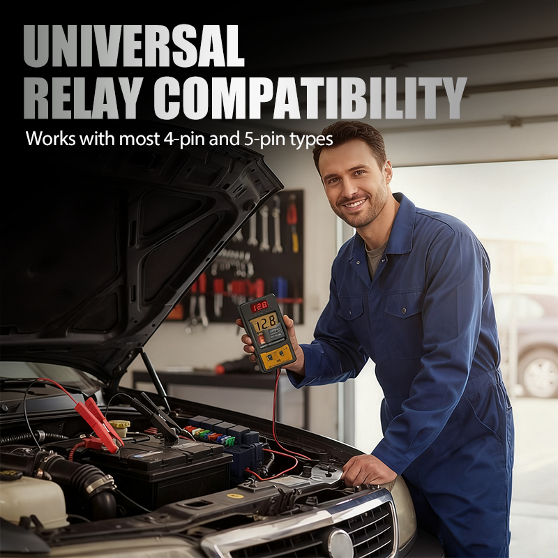 UNIVERSELLE KOMPATIBILITÄT – Dieser Checker wurde für maximale Vielseitigkeit entwickelt und ist universell mit den meisten standardmäßigen 4-poligen und 5-poligen Kfz-Relais kompatibel. Dadurch sind keine speziellen Testgeräte mehr erforderlich, sodass Sie für verschiedene Diagnoseszenarien gerüstet sind.