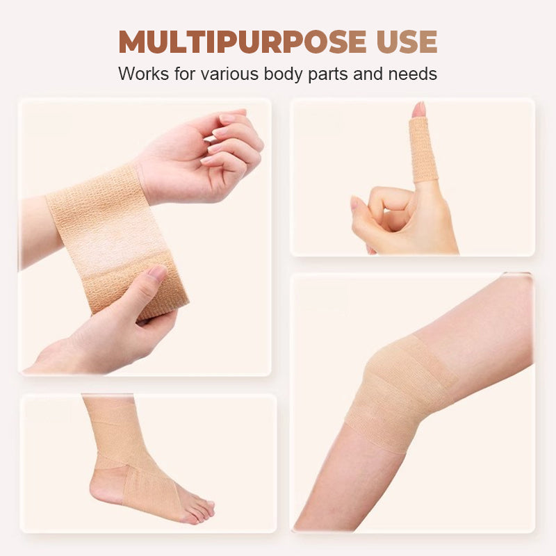 SICHERE SELBSTHAFTENDE BEFESTIGUNG: Das Band haftet an sich selbst ohne Klebstoff oder Verschlüsse, bietet stabilen Halt ohne an Haut oder Haaren zu kleben. Die Entfernung ist schmerzfrei und vermeidet Reizungen oder Verletzungen, was es ideal für langfristige und wiederholte Anwendung macht.