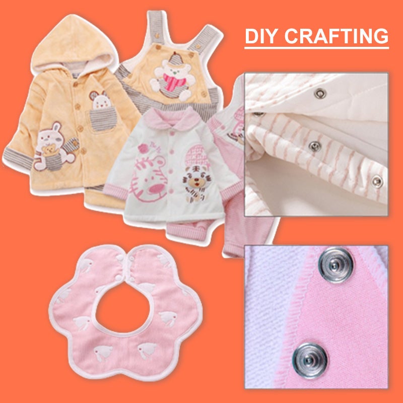 Dieser Druckknopf-Werkzeugsatz ist ausreichend, um Ihre verschiedenen Bedürfnisse beim Heimwerken oder bei der Herstellung von dünner Kleidung zu erfüllen. Es kann auf Baby-Lätzchen krabbeln Kleidung Hüte Hemden Baby Jumpsuits Speichel Handtücher Barbie / Puppe Kleidung Haustier Kleidung oder andere Orte, die Sie es brauchen angewendet werden.