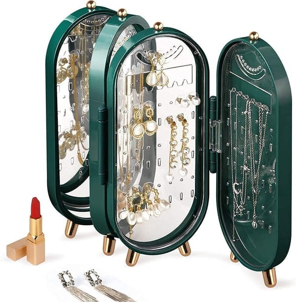- 📦 Kompakt & platzsparend: Trotz ihrer eleganten Form bietet sie viel Stauraum für Ohrringe, Ketten, Ringe und Armbänder.