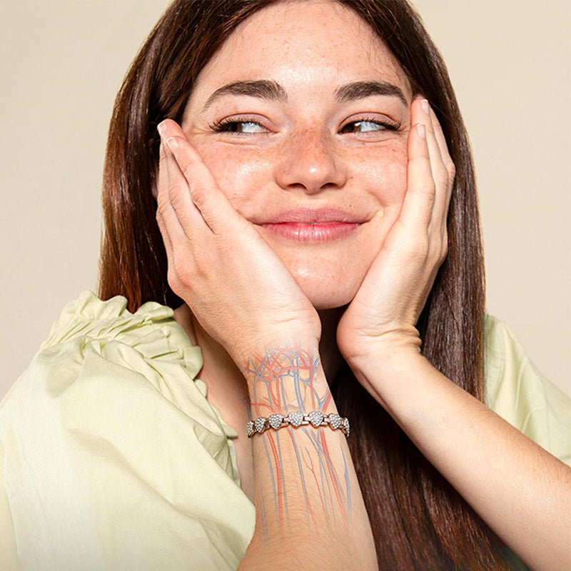 ELEGANZ & STIL: Dieses Armband aus reinem Kupfer für Damen verfügt über herzförmige Glieder, die mit funkelnden Zirkoniasteinen akzentuiert sind und einen raffinierten, strahlenden Look kreieren, der jedes Outfit aufwertet.